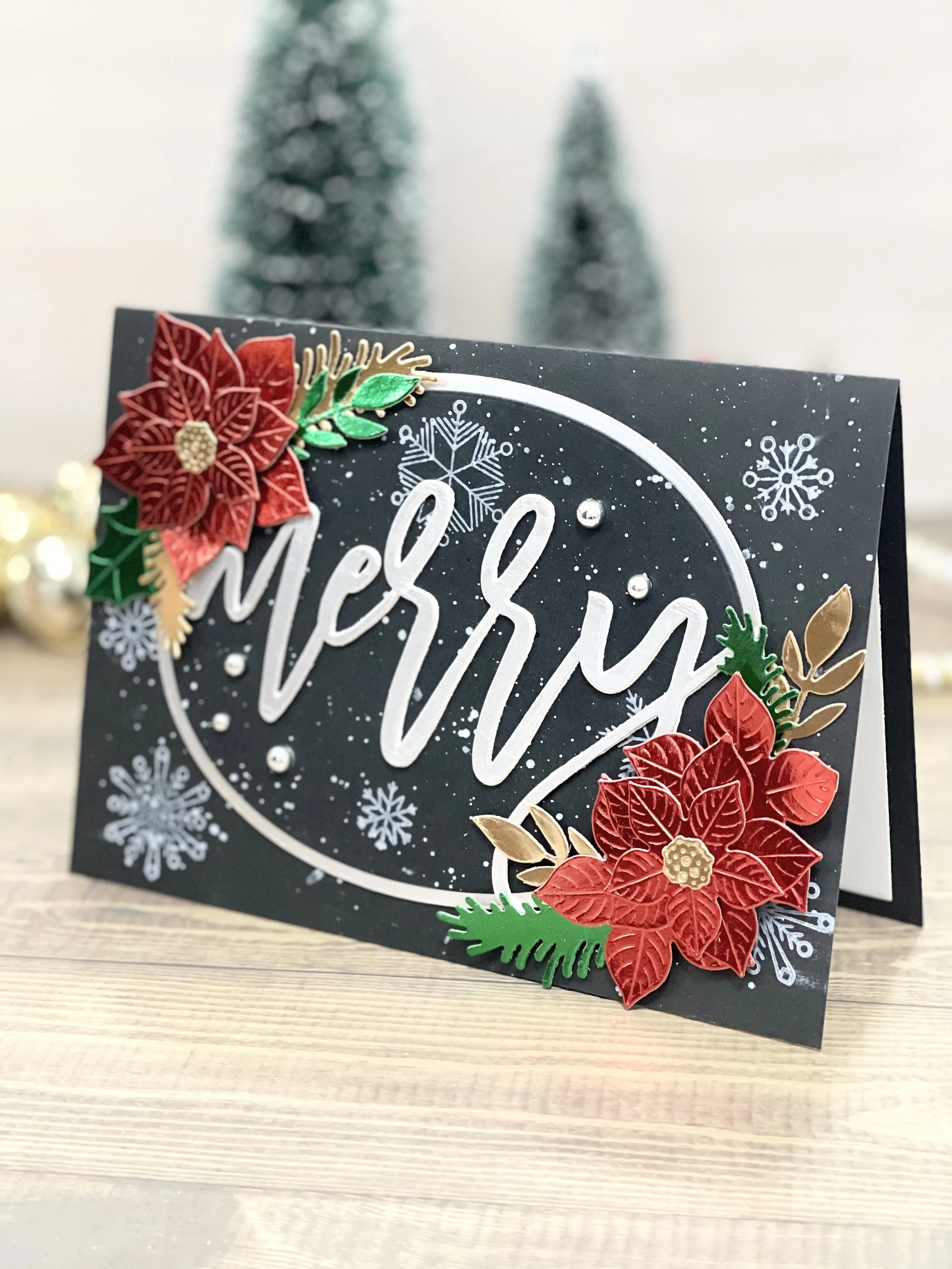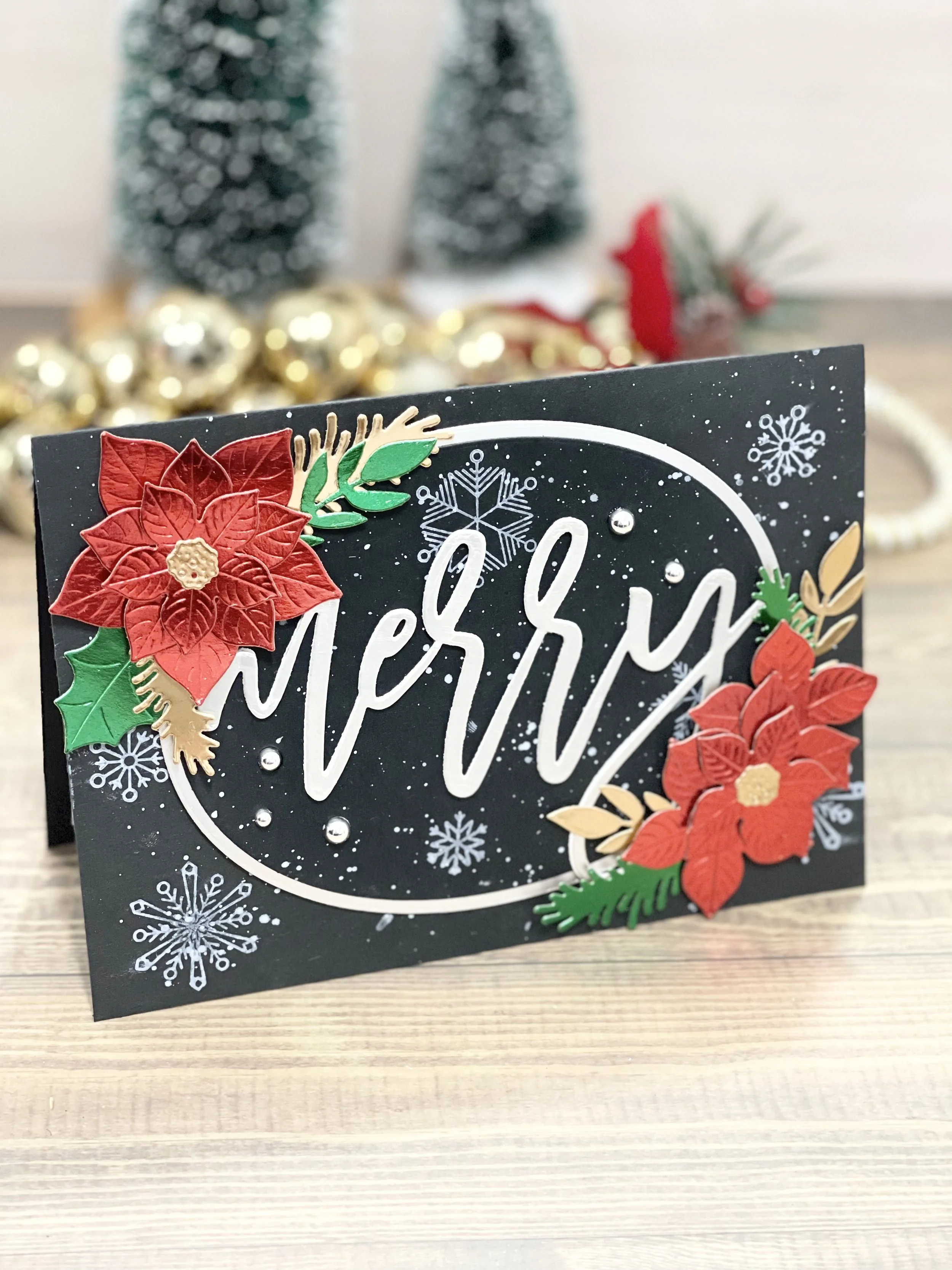 Welcome to Day 11 of the Holiday Card Series. This card is created using products from Honey Bee Stamps and Waffle Flower. I think this is card is one of my absolute favorites that I have created for this series! From the metallic foliage and the bold sentiment, this card is indeed MERRY! I hope you enjoy this tutorial, thank you for taking your time to stop by.