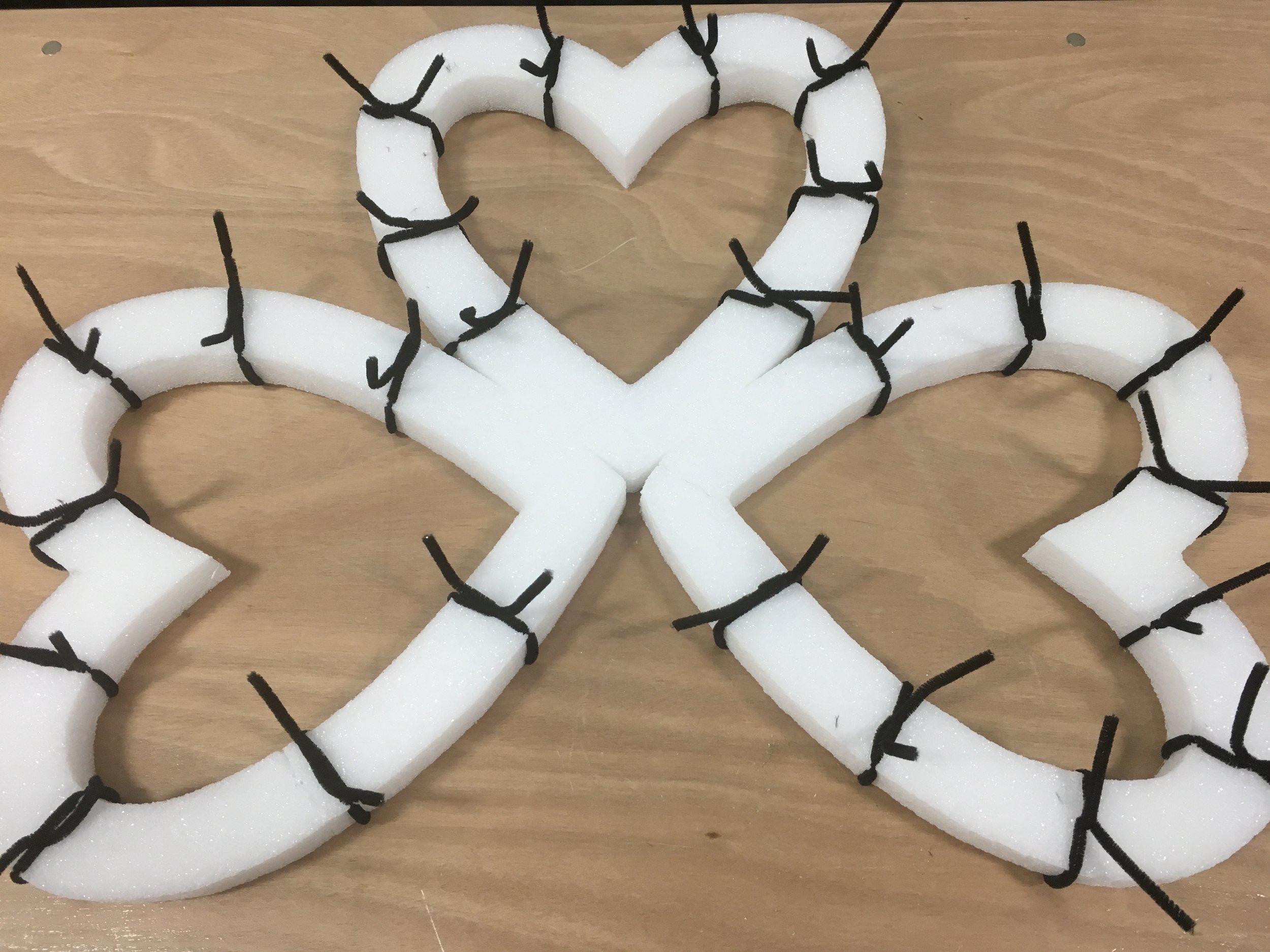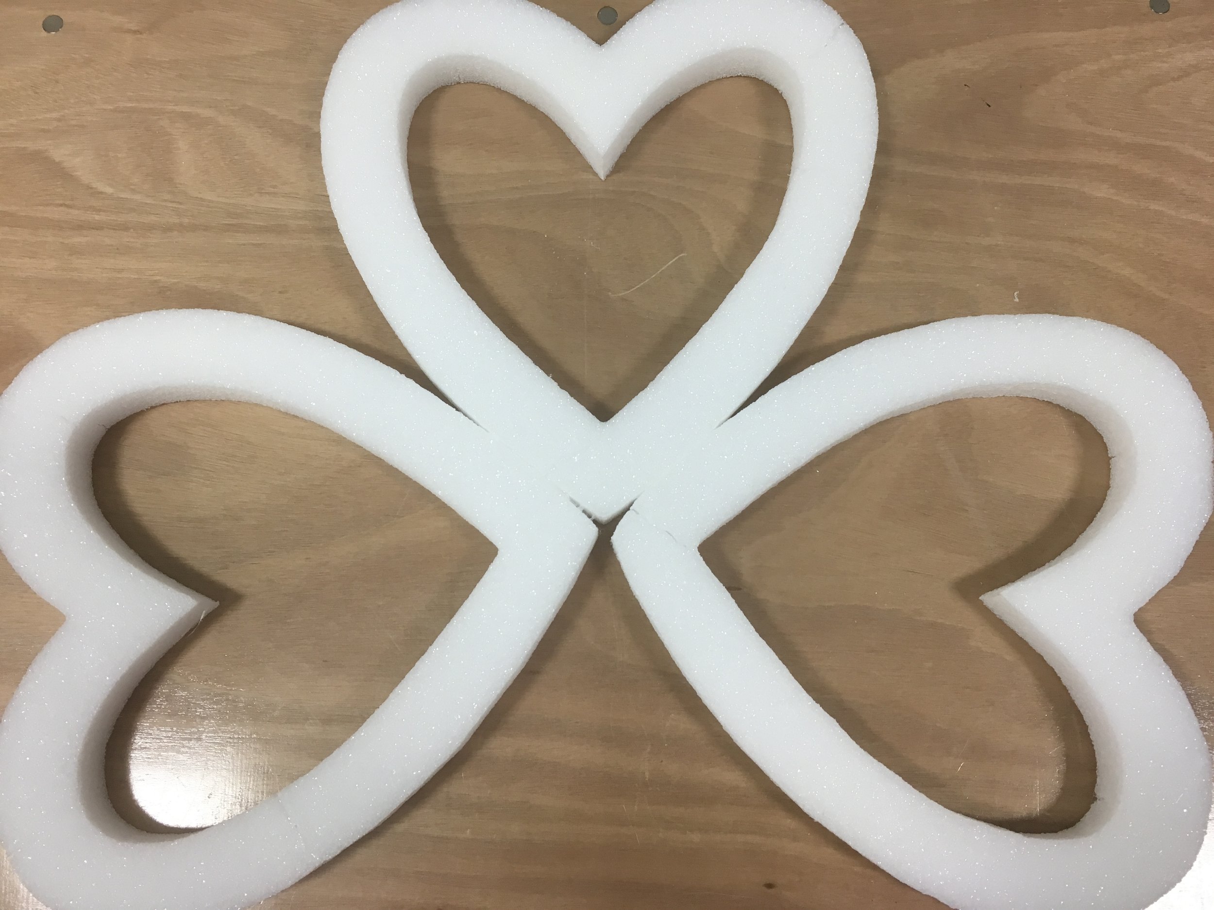 Place your 3 foam hearts together to shape a 3 leaf clover. Secure by hot glueing the pieces together.