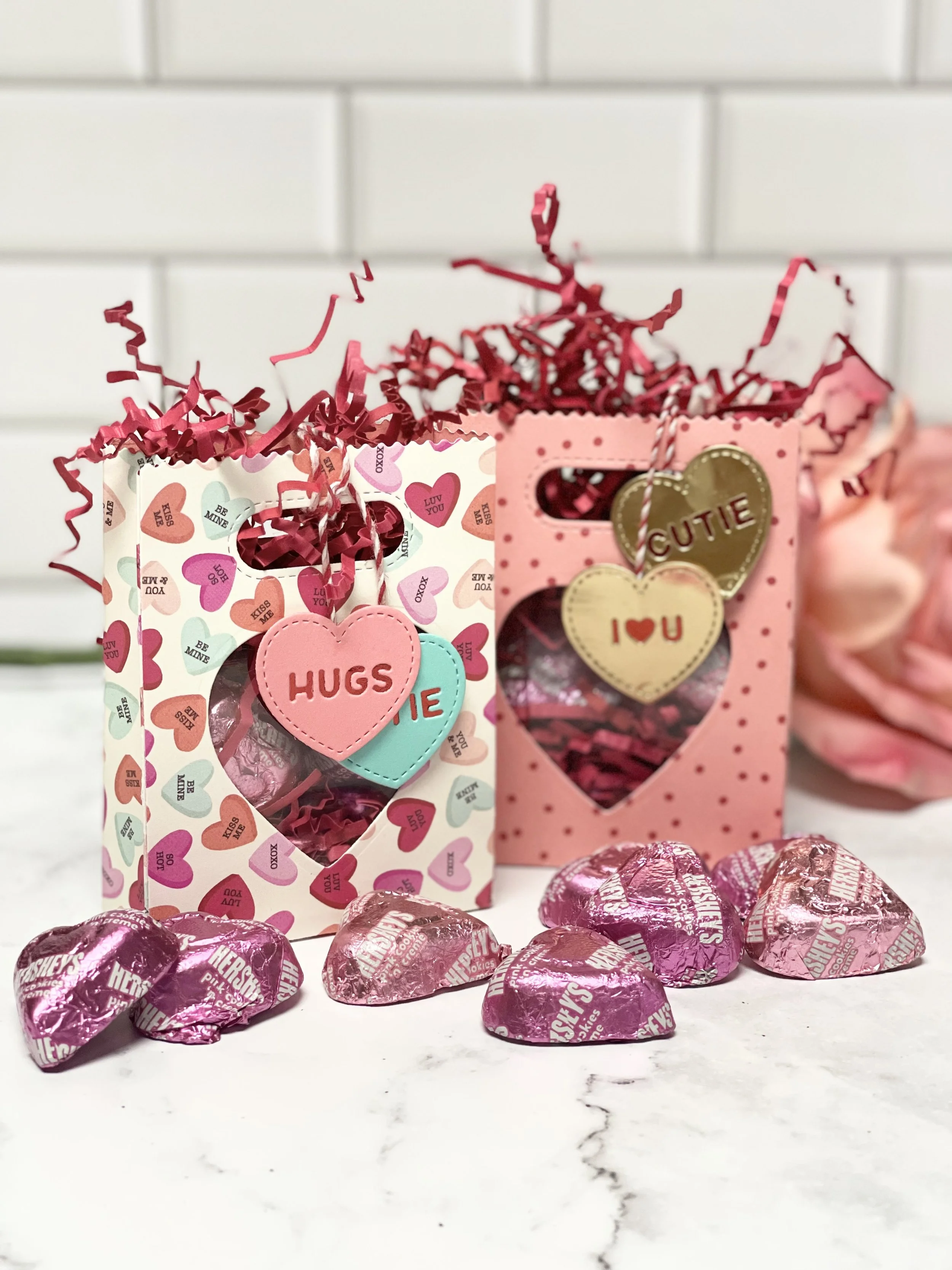 I hope you are having an amazing day!! I am a HUGE fan of treat bags and favors. So, for Valentine’s Day I decided to create these adorable bags, and fill them with some Hershey’s. For more information, check out the YouTube tutorial below.