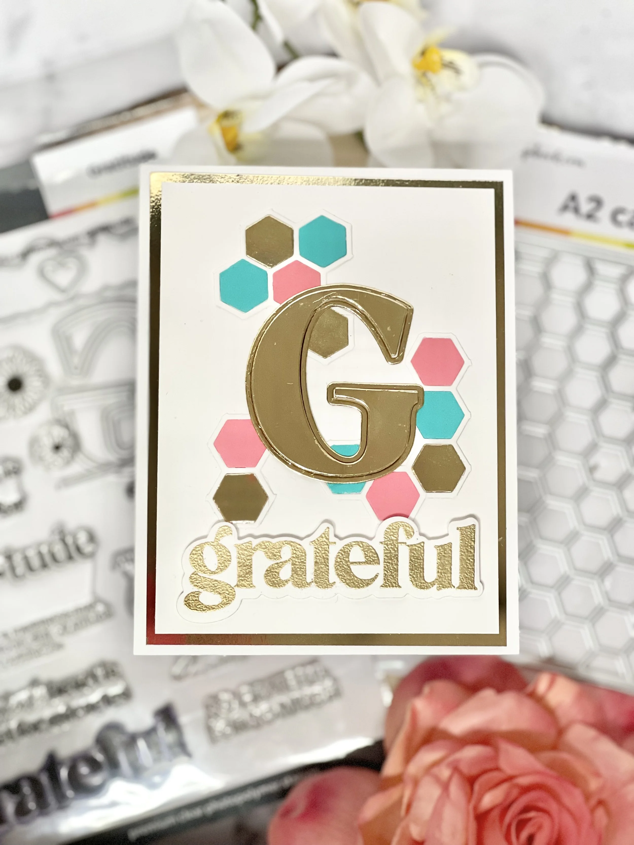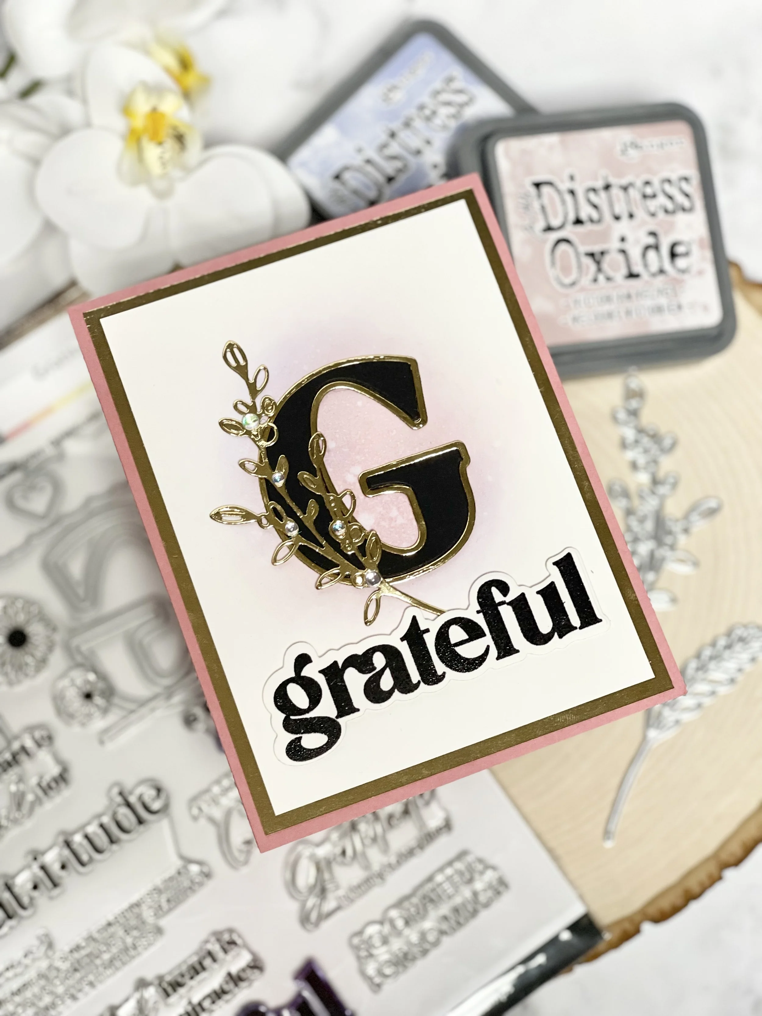 I hope you are having a great start to this month and year. Today, I am sharing with you a card that is actually my first and favorite that I have created this year. The Gratitude stamp and die set is one of my favorite sets, and I really enjoyed creating the 2 cards. I had one layout design in mind however, I decided to create 2 different styles of cards.